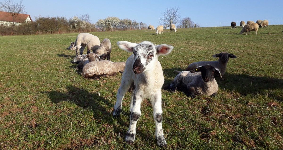 Mit unseren Mutterschafe, der Rasse Ostfriesische Milchschafe, und einem Suffolk-Schafbock, einer fleischbetonten Rasse, züchten wir Lämmer. Diese vereinen sowohl die freundliche und zutrauliche Art der Mütter als auch den guten Muskelaufbau der Väter. Die muttergebundene Aufzucht und die fast ganzjährige Weidehaltung lässt die Schafe ihr natürliches Verhalten ausleben. Auch in den Wintermonaten im Stall haben unsere Tiere, soweit es das Wetter zulässt, Zugang zur Weide. Die Lämmer wachsen auf natürliche langsame Weise heran und entwickeln ein aromatisches und feines Fleisch.